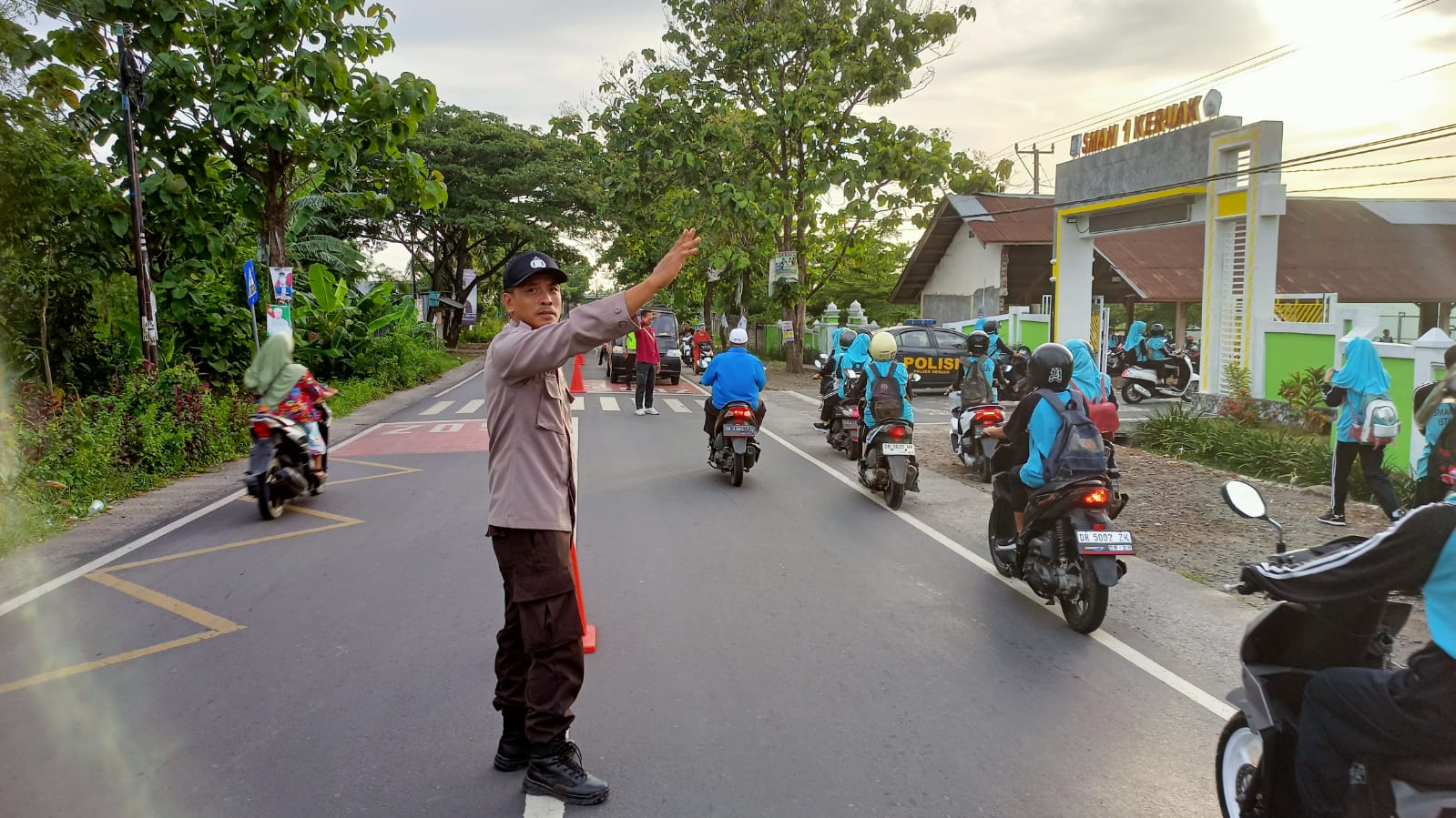 Lombok Timur – Personel Polsek Keruak melaksanakan kegiatan pengaturan lalu lintas (strong point) di depan SMAN 1 Keruak pada Sabtu (13/09/2025) sekitar pukul 06.30 Wita. Kegiatan ini dipimpin oleh Ka SPKT III Aiptu Burhanuddin Zuhri bersama dua anggota Polsek Keruak.