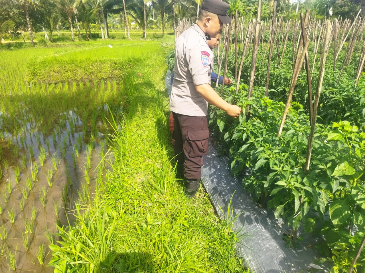 Dalam kegiatan tersebut, Bripka Slamet Suprihono meninjau langsung tanaman cabai milik warga yang menjadi salah satu komoditas pendukung program ketahanan pangan bergizi. Kegiatan ini bertujuan memastikan lahan yang ada dimanfaatkan dengan baik sehingga dapat membantu memenuhi kebutuhan pangan keluarga serta mendukung program swasembada pangan pemerintah.