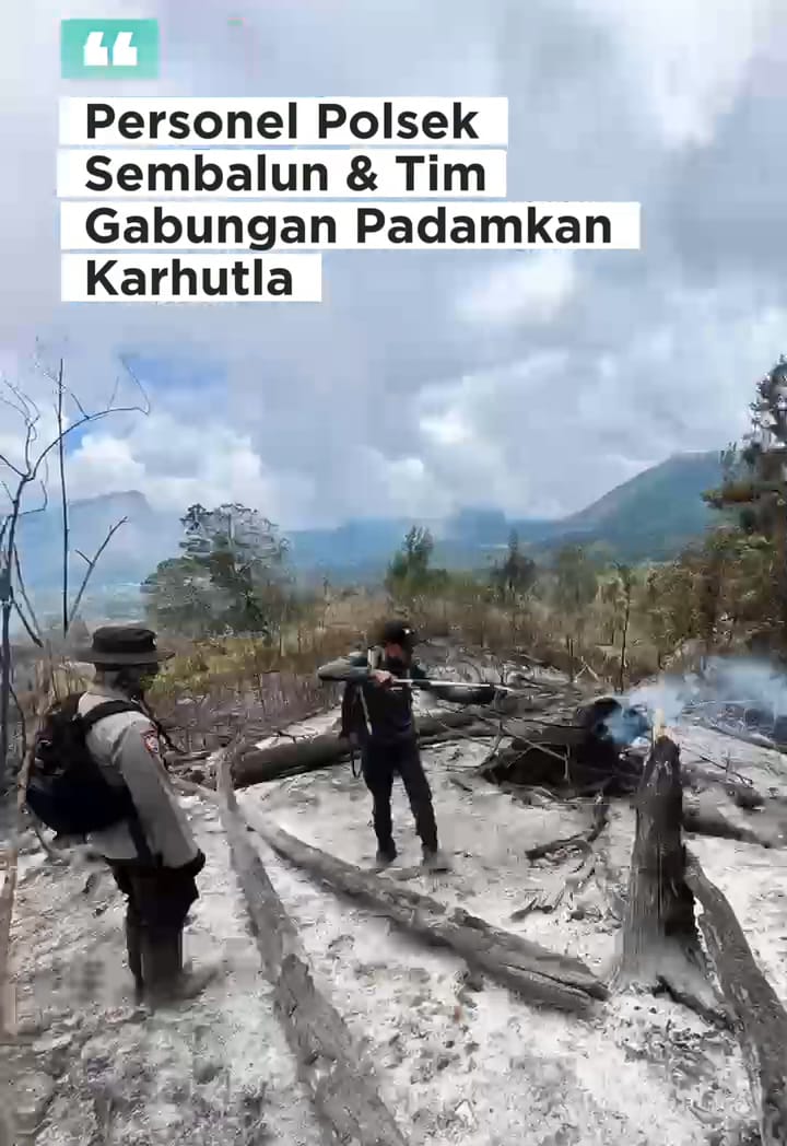 Lombok Timur – Personel Polsek Sembalun Polres Lombok Timur bersama tim gabungan melaksanakan kegiatan pemadaman kebakaran hutan di kawasan Taman Nasional Gunung Rinjani (TNGR) Resort Sembalun. Kegiatan ini dilakukan sebagai upaya tanggap darurat terhadap kebakaran yang melanda sebagian area hutan konservasi di wilayah tersebut.