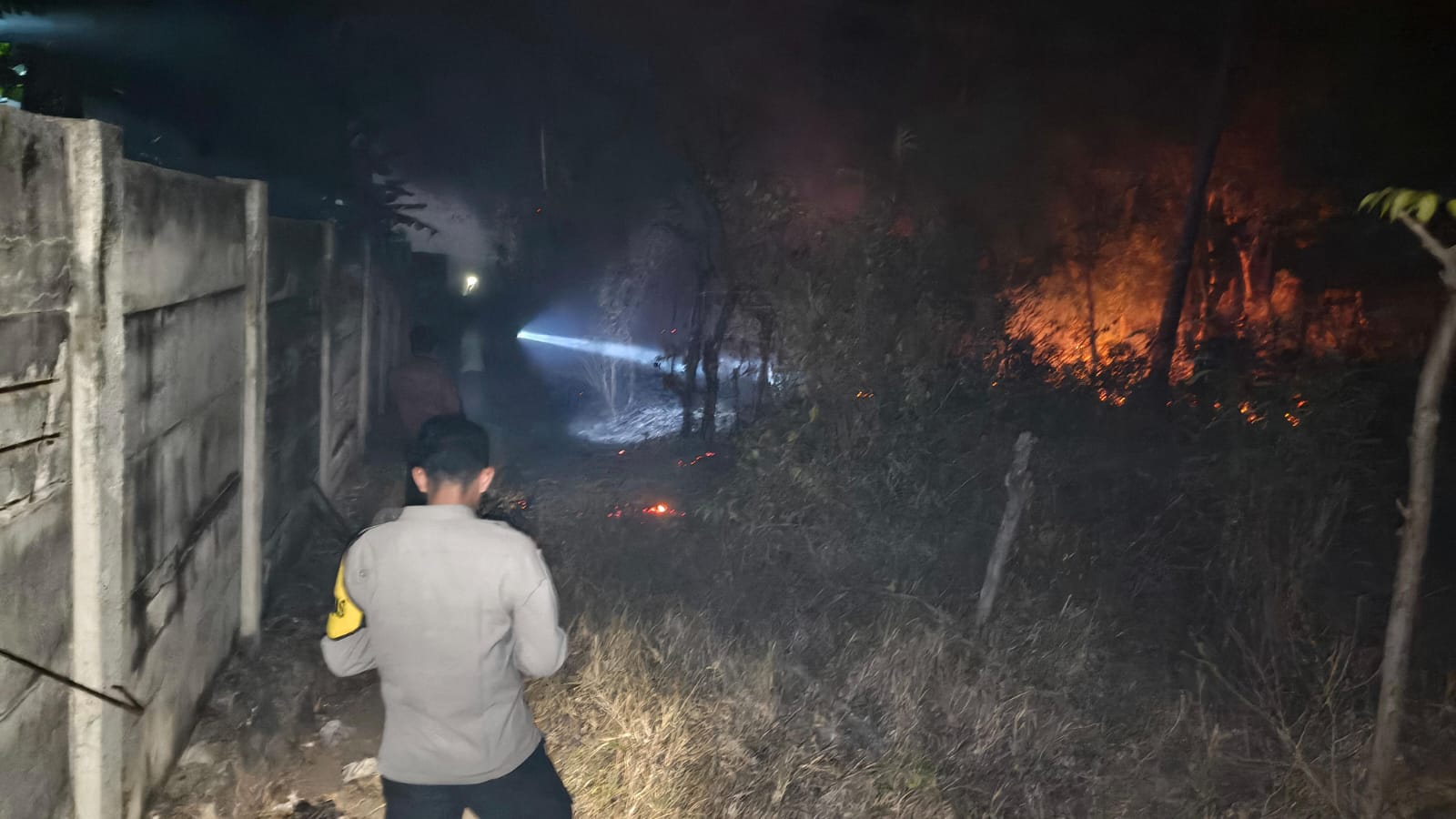 Lombok Timur – Tiga orang anggota piket Polsek Sambelia mendatangi lokasi kebakaran lahan milik warga yang terjadi pada Rabu malam (08/10/2025) sekitar pukul 19.30 Wita di Dusun Tibu Borok, Desa Padak Guar, Kecamatan Sambelia. Kebakaran tersebut menghanguskan lahan seluas kurang lebih satu hektar milik seorang warga bernama Pak Dalim.