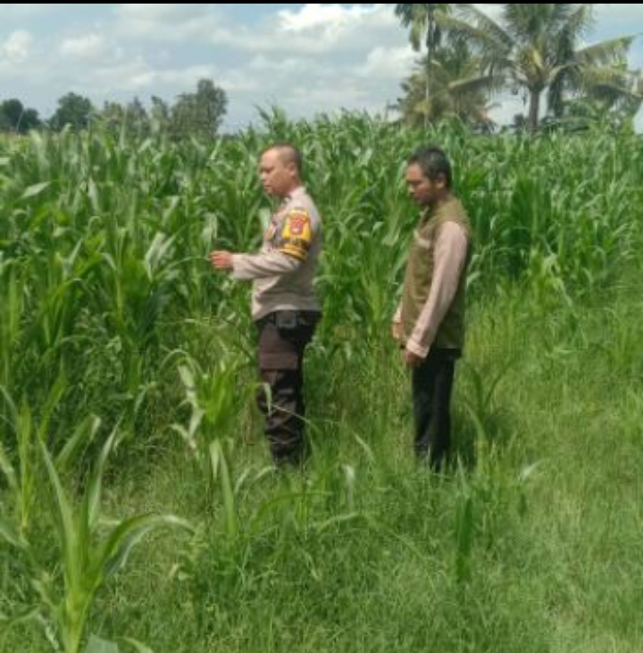 Selain bersilaturahmi, Aipda I Gede Agus Widiane juga melakukan pengecekan tanaman jagung milik Kelompok Baru Mekar yang memiliki luas areal sekitar 10 are. Pengecekan ini dilakukan sebagai bentuk monitoring ketahanan pangan yang saat ini sedang digalakkan oleh pemerintah dan Polri.